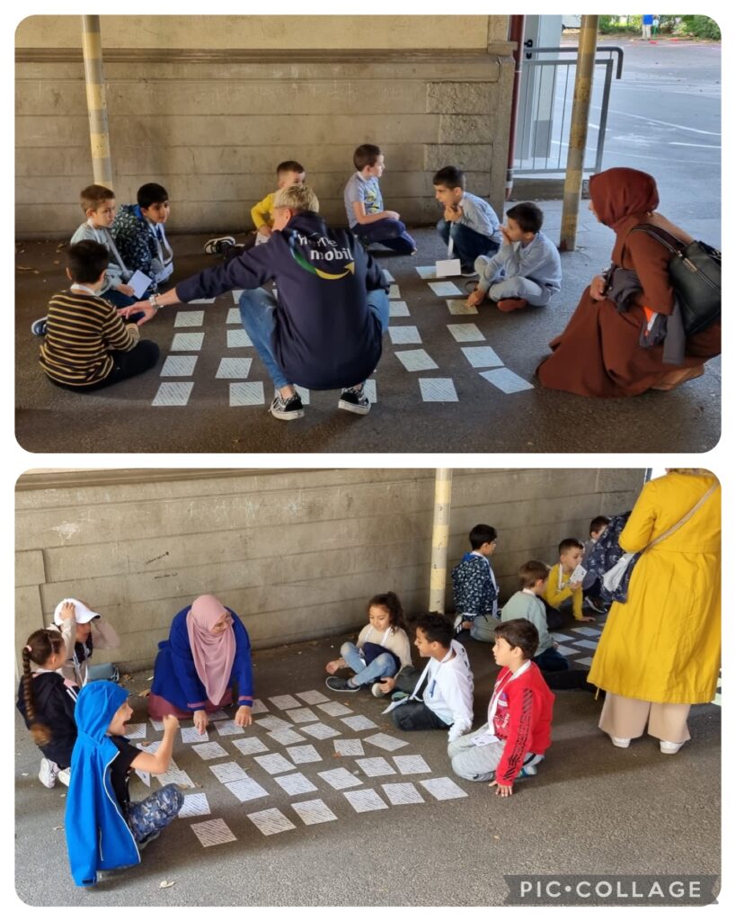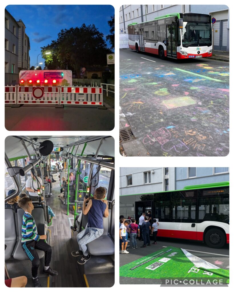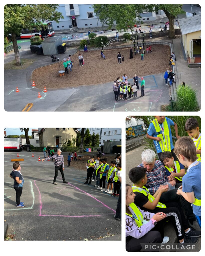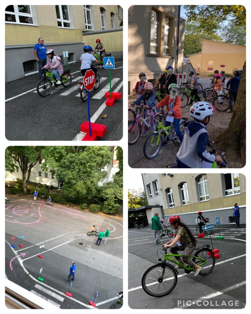 Am Donnerstag haben wir an der europäischen Mobilitätswoche teilgenommen. An diesem Tag hatten wir einen autofreien Tag vor unserer Schule. Die Straße wurde gesperrt und mit Hilfe vieler Helfer konnten wir Stationen um die Schule herum aufbauen, an denen die Kinder alles zum Thema Mobilität erforschen konnten. Die Kinder erhielten eine Fahrkarte und nach Durchführung erhielten sie an jeder Station einen Stempel. Am Ende des Tages gab es zur Belohnung ein Reflektor-Band.