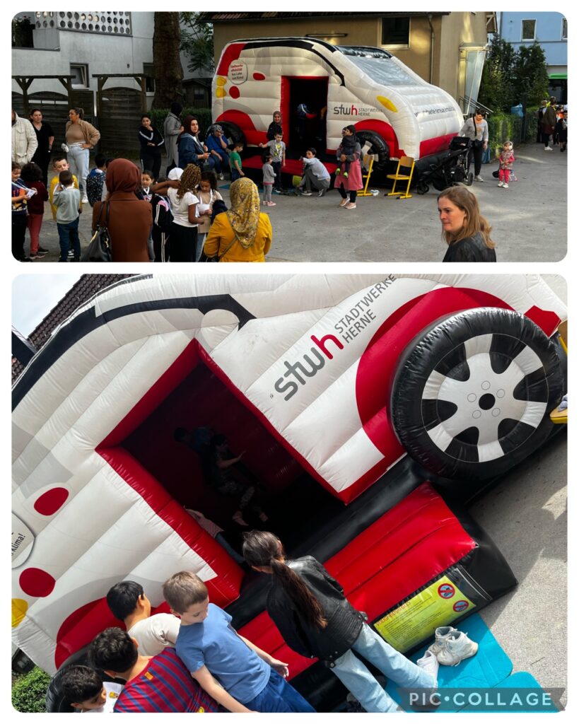 Besonders viel Spaß hatten die Kinder auf der Hüpfburg. Diese stellte ein Fahrzeug dar.